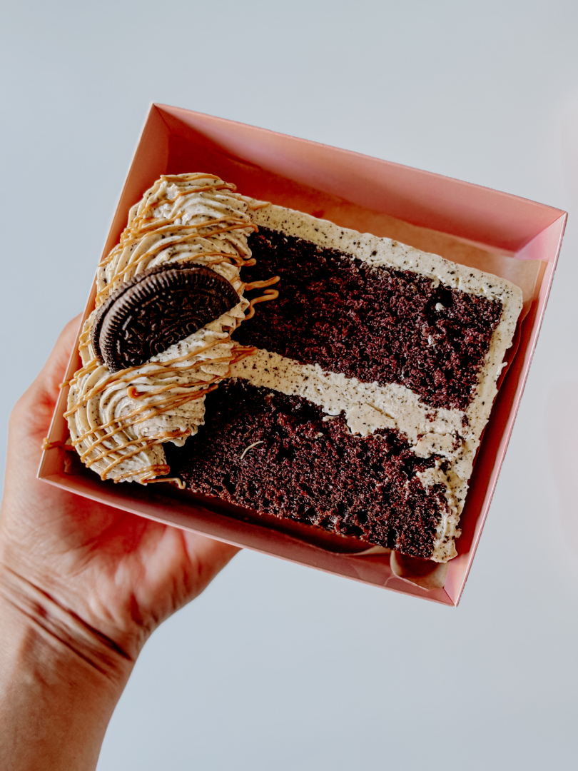 Peanut Butter Chocolate Cookies and Cream Cake Slice